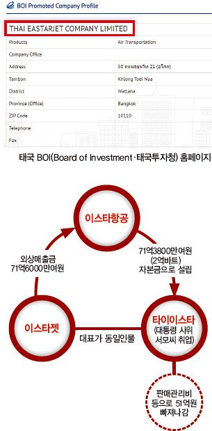 태국투자청 승인 기업은 태국 현지에서 타국으로의 외환 송금 등에 편의를 보장받을 수 있고, 법인세를 3~10년까지 면제받을 수 있다. 외국인의 지분 100% 보유가 허용되고, 법인명으로 토지소유권도 인정된다. 태국은 일반적으로 외국인에게 토지 소유권을 허가하지 않지만 태국투자청 승인 기업에 한해 예외를 두는 것이다. 태국투자청은 토지대와 운영경비 등을 제외하고 최소 100만바트 이상 투자를 한 기업에 이러한 혜택을 준다. 타이이스타는 태국에서 ‘외국 기업’이 아니다. 태국인 대표 2명이 지분의 99.98%를 보유하고 있기 때문이다. 한국인 대표 박모씨는 0.02%의 지분을 갖고 있을 뿐이다. 타이이스타는 2017년 2월 자본금 2억바트(약 71억여원)로 설립됐다. 다만 태국투자청은 자국 기업에 대해서도 필요한 조건을 충족할 경우 외국 기업과 동등한 혜택을 준다고 한다. 항공운송업(Air Transportation) 업종에서 태국투자청의 승인을 받은 기업은 모두 태국계 회사들이다.