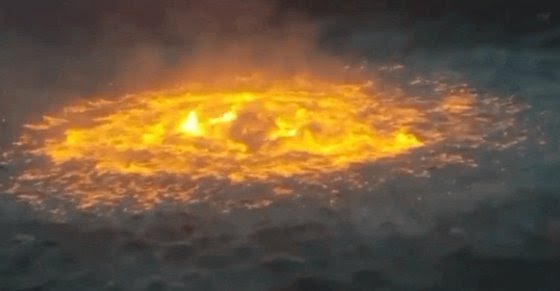 불길 솟구치더니 용암처럼 펄펄…바다에 등장한 '불구덩이' (영상)