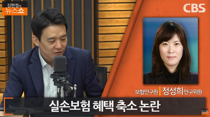 ■ 방송 : CBS 라디오 <김현정의 뉴스쇼> FM 98.1 (07:20~09:00) ■ 진행 : 손수호 변호사 (김현정 앵커 대신 진행) ■ 대담 : 정성희 (보험연구원 연구위원) 어제 실손의료보험이 새롭게 개편됐습니다. 일