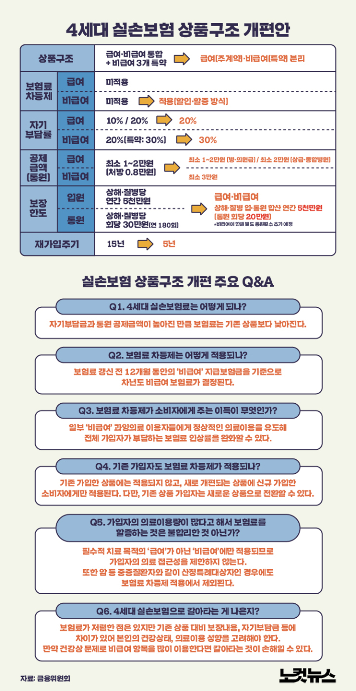 ◆ 정성희> 글쎄요. 그게 3세대도 마찬가지였거든요. 3세대 개편도 이제 문제가 되는 비급여를 조금 더 관리 차원에서 상품 구조 개편을 했는데요. 그 문제되는 것만 특약으로 했더니 다른 비급여 문제가 있어서 이번에는 전면 개편을 한 면이 있어요.