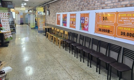 8일 낮 12시 서울 여의도 식당가 일대. 한 식당 앞에 마련된 대기석에 손님이 한 명도 없다. 채혜선 기자