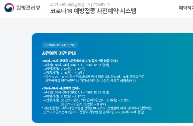질병청 백신 예약 사이트