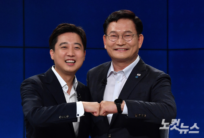 더불어민주당 송영길 대표와 국민의힘 이준석 대표가 21일 김경수 경남도지사의 대법원 선고 등 최근 현안들을 두고 TV토론에서 격돌했다. 동시에 비주류 출신이라며 공감대를 보이는 모습도 연출했다.
