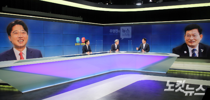 더불어민주당 송영길 대표와 국민의힘 이준석 대표가 21일 김경수 경남도지사의 대법원 선고 등 최근 현안들을 두고 TV토론에서 격돌했다. 동시에 비주류 출신이라며 공감대를 보이는 모습도 연출했다.