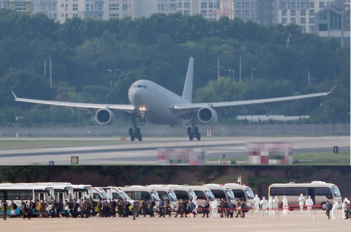 서울공항에 도착한 청해부대 34진 문무대왕함 장병들 (연합뉴스)