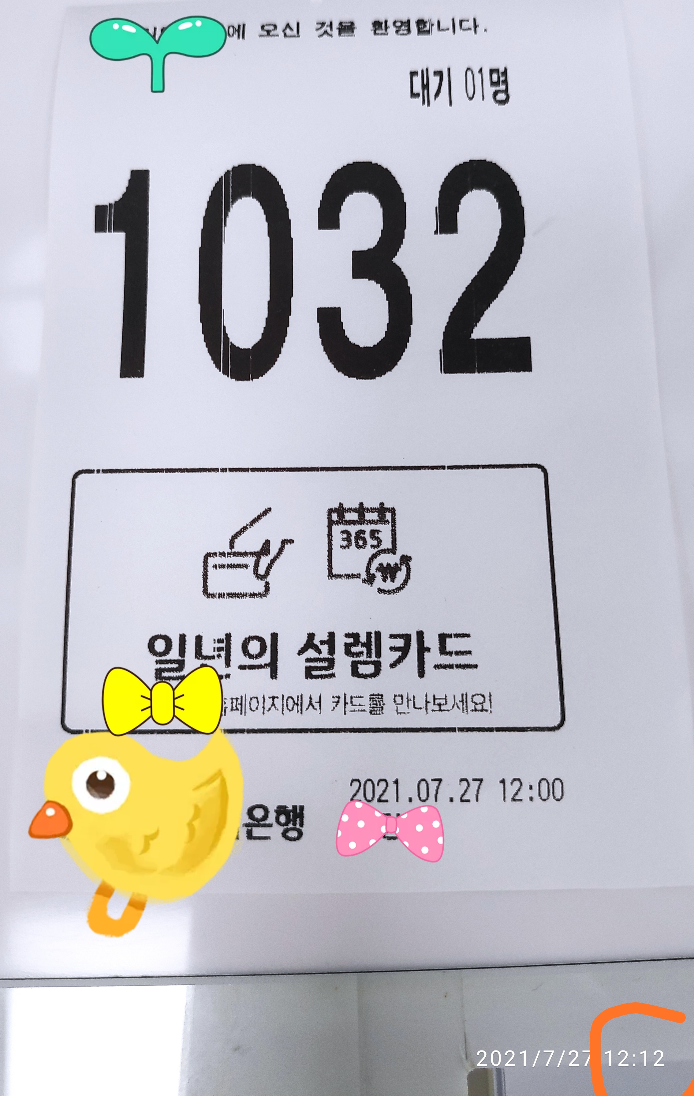 대기 인원 1명이었어.