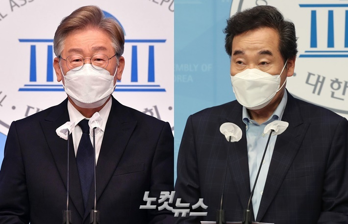 왼쪽부터 더불어민주당 대선 후보 이재명 경기도지사, 이낙연 전 더불어민주당 대표. 자료사진