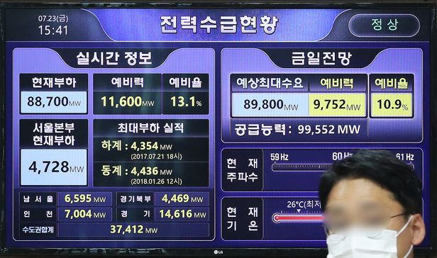 전국 45건 아파트 정전 관리실 세탁기 돌릴 때 에어컨 끄세요 전기 사용량 급증 아파트 용량 한도 초과 한국전력공사 전력수급현황 오후 4시 경 예비력 11,470MW, 예비율 12.9% 기록