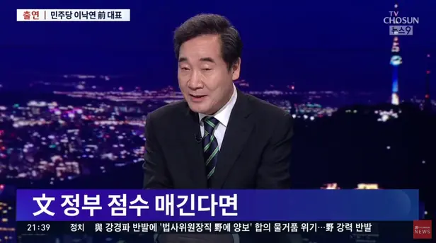 지난 3일 이낙연 전 당대표가 TV조선 뉴스9 인터뷰에서 '문재인 정부의 점수를 매긴다면 몇 점 정도를 주겠냐'는 질문에 '70점정도 할까요'라고 답했다/TV조선