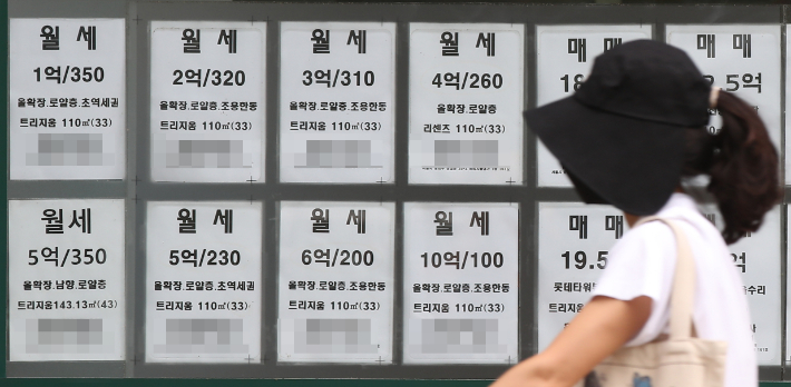 서울의 한 부동산중개업소에 월세 매물정보가 붙어 있다. 연합뉴스