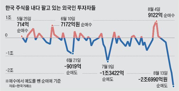 한국 주식을 내다 팔고 있는 외국인 투자자들