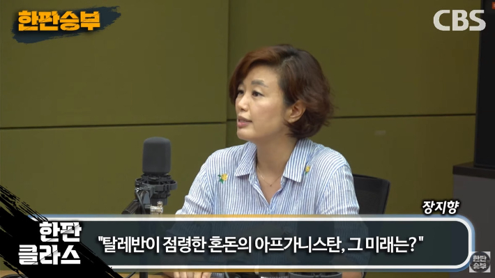 ◇ 박재홍> <한판 클라스> 시간. 매주 금요일 2부에서 함께하고 있죠. 오늘 주제는 탈레반이 점령해 버린 아프가니스탄에 관한 얘기입니다. 그래서 저희가 이 아프가니스탄 문제에 대해서 제일 말씀을 잘해 주실 수 있는 분을 오늘 특별히 모셨습니다. 중동전문가시죠. 아산정책연구원의 장지향 중동연구센터장이십니다. 어서 오십시오.