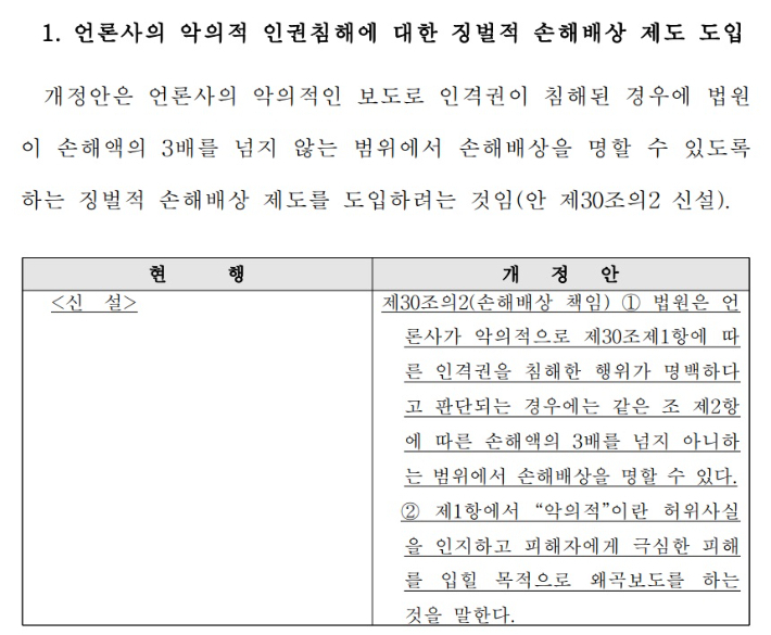 "고의 또는 중과실로 허위, 조작 보도를 한 언론사에 대하여 '징벌적 손해배상제'를 도입한 언론중재법 개정안이 상임위를 통과했다. 천신만고 끝에 검찰개혁법안에 이어 언론개혁법안이 통과