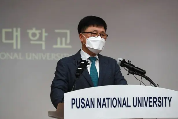 부산대 김홍원 부총장이 24일 부산 금정구 부산대학교 본관에서 조국 전 장관 딸 조민씨의 의학전문대학원 입시 의혹과 관련한 최종 결론을 발표하고 있다./연합뉴스