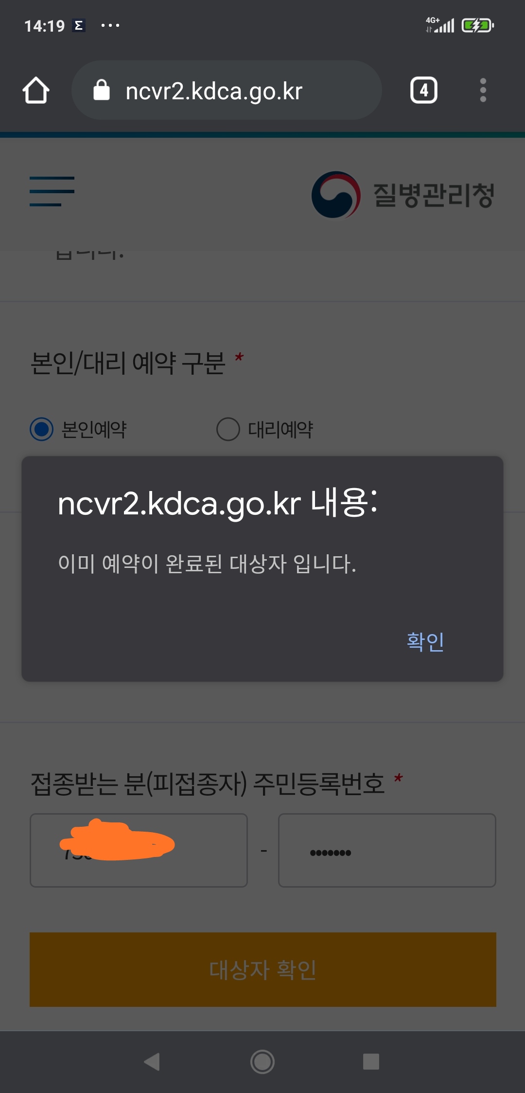 님 18-49세 코로나19 예방접종 일정을 추석 이후로 예약해주셨습니다.현재 9월 6일(월)~19일(일)까지 예약 가능한 인원이 확대되었습니다. 그러나 이미 예약되어 진행 불가 취소후 가능