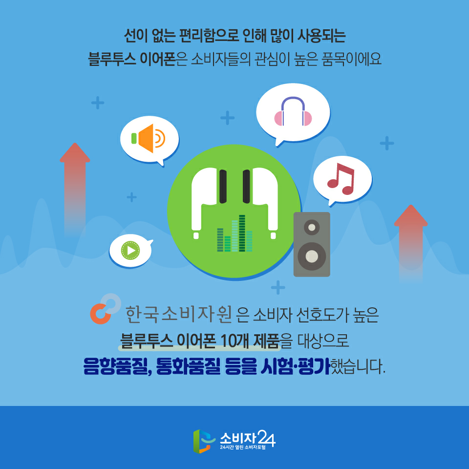 한국소비자원은 소비자 선호도가 높은 블루투스 이어폰 10개 제품을 대상으로 음향품질, 통화품질 등을 시험 평가 했다고 한다.