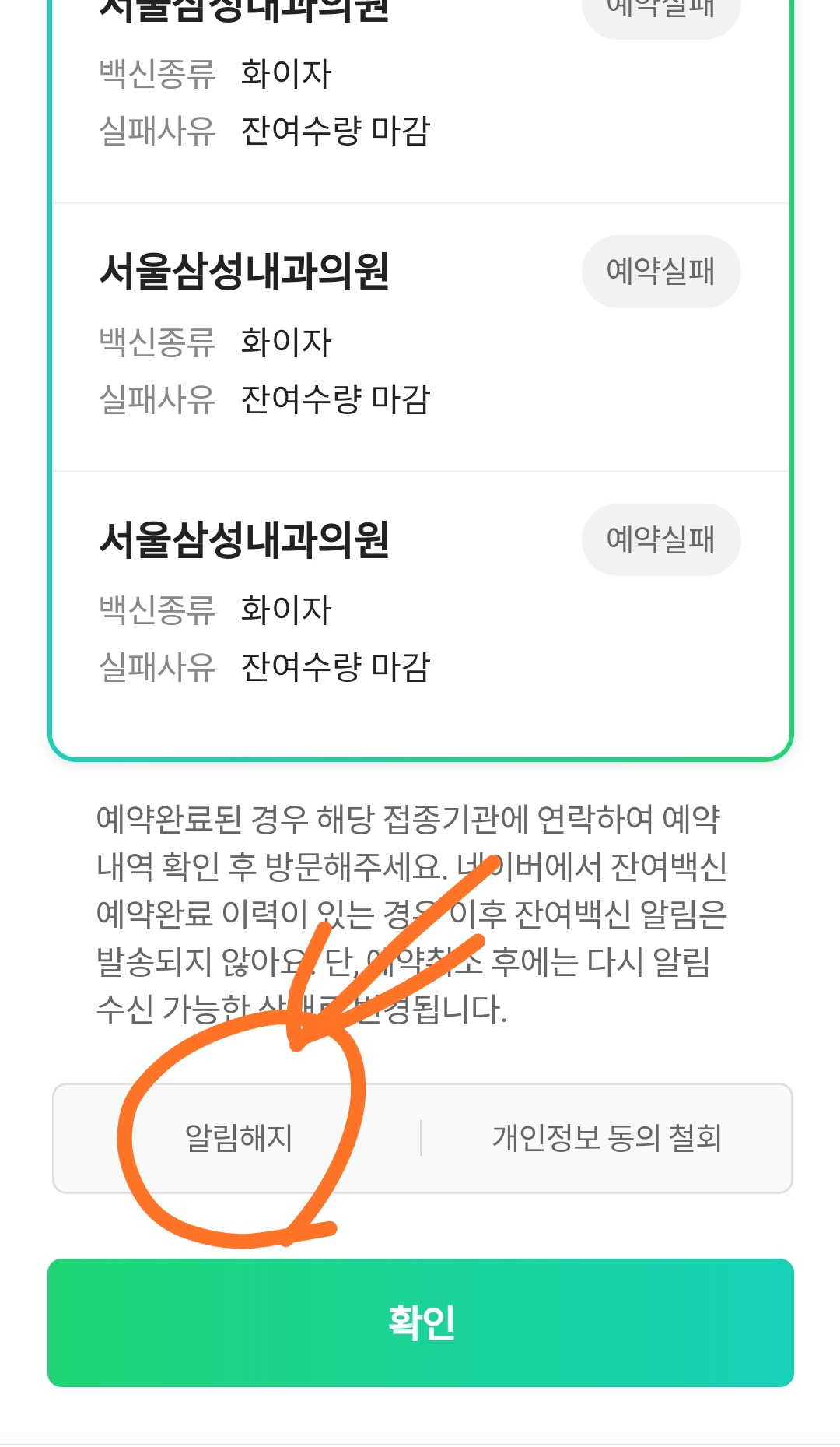 그러고 나서 이제 더이상 잔여백신 알림이 불필요한대도 네이버에서는 계속 알림이 떠서 그걸 취소해야 했다.
