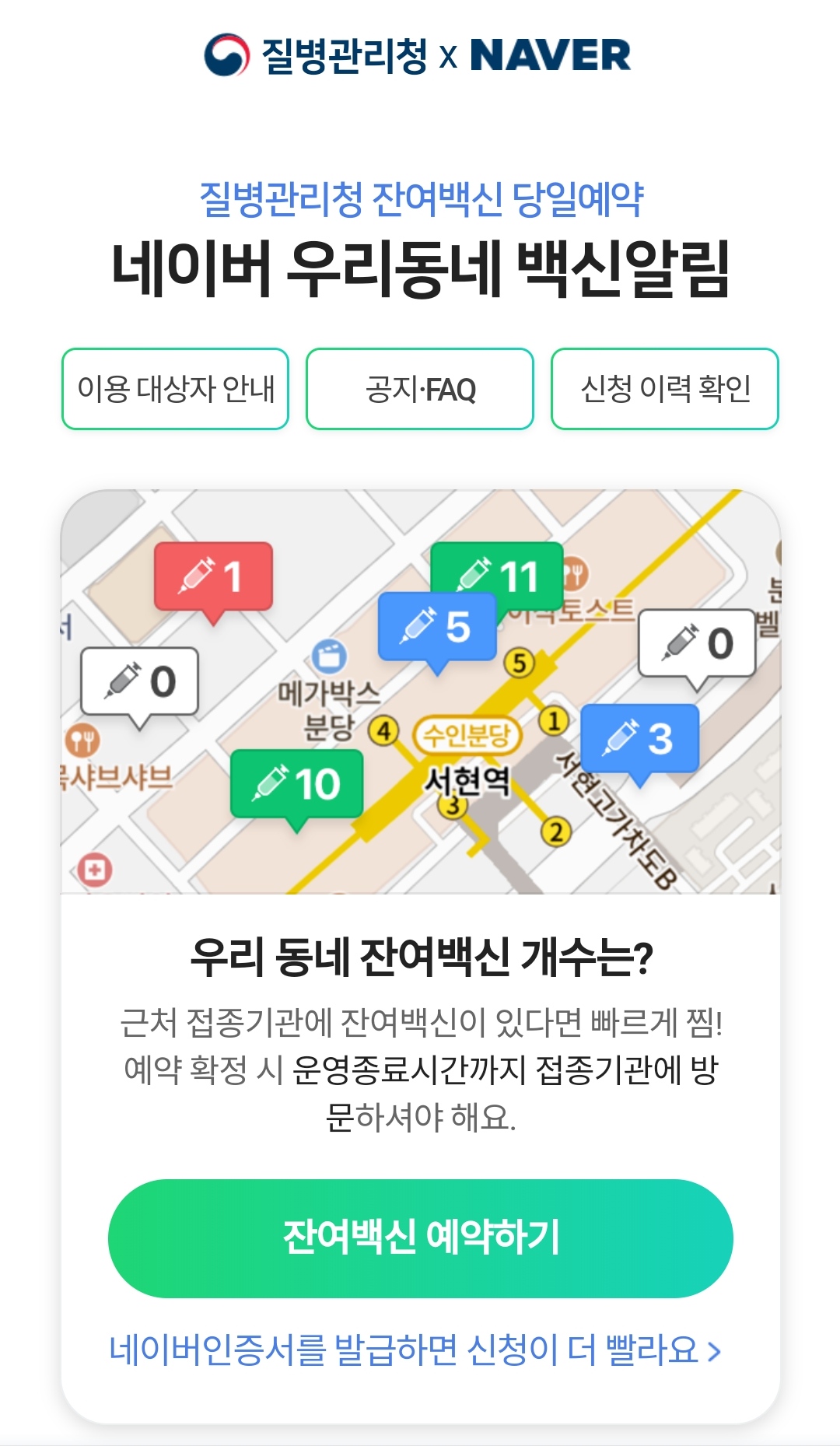 네이버에서 잔여백신 알림을 신청했지만, 알림이 늦어서 예약신청을 하지 못했다. 아니, 더 빨리 예약신청하는 사람에 밀려서 못한 거라 할 수 있다.