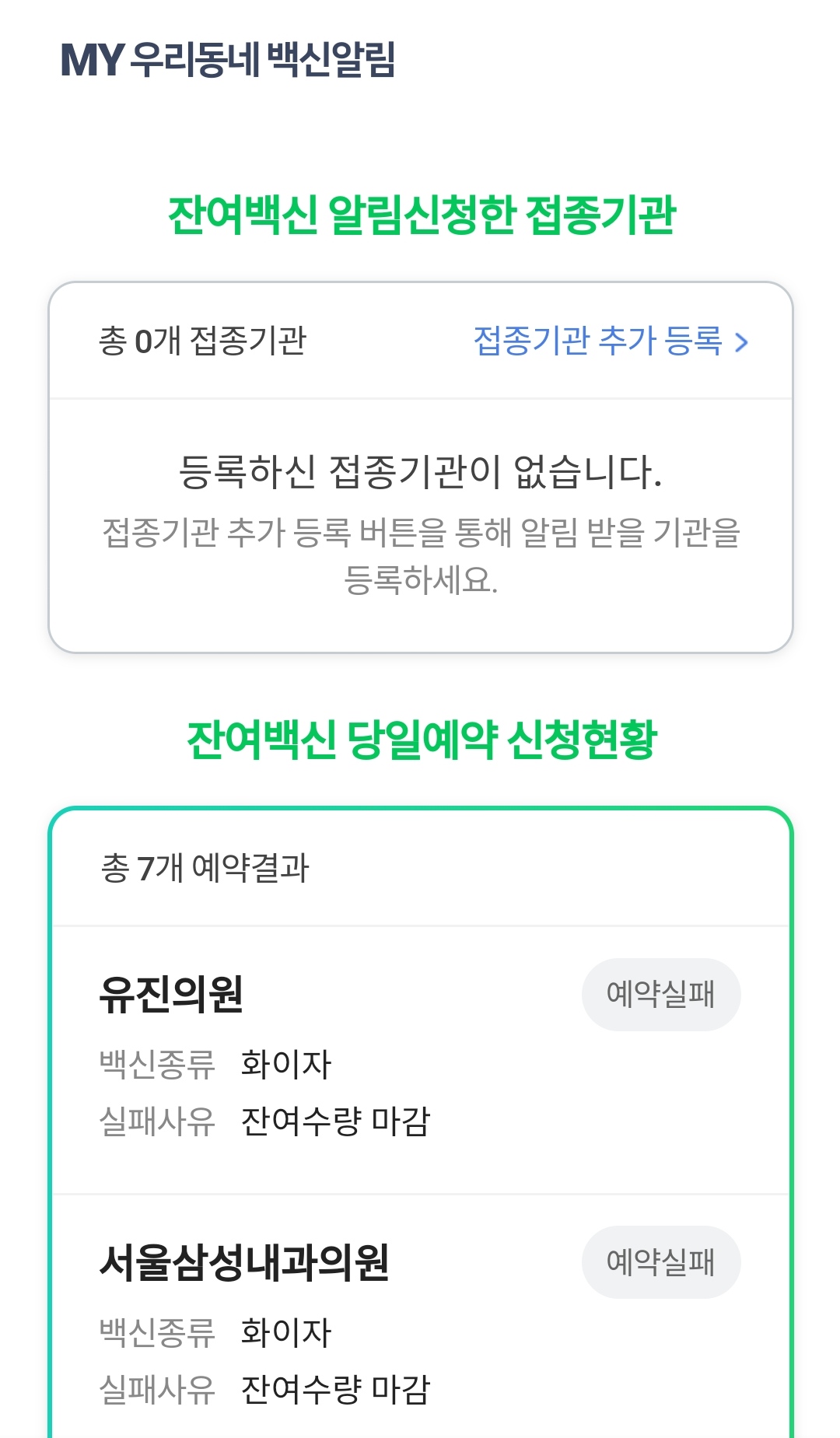 아래에 예약실패 했던 내역이 보이지 않는가?