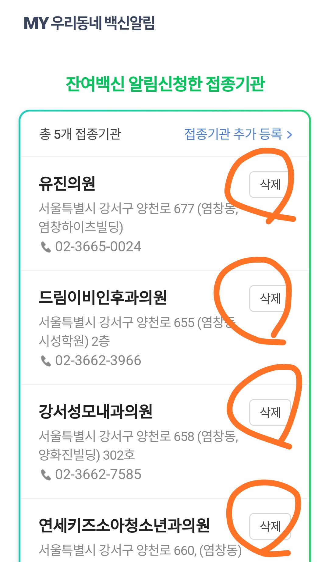 주변에 있는 의원들을 선택할 수 있었다. 그래서 조금 멀지만 걸어서 7분 정도 갈 수 있는 곳도 걸어뒀다.