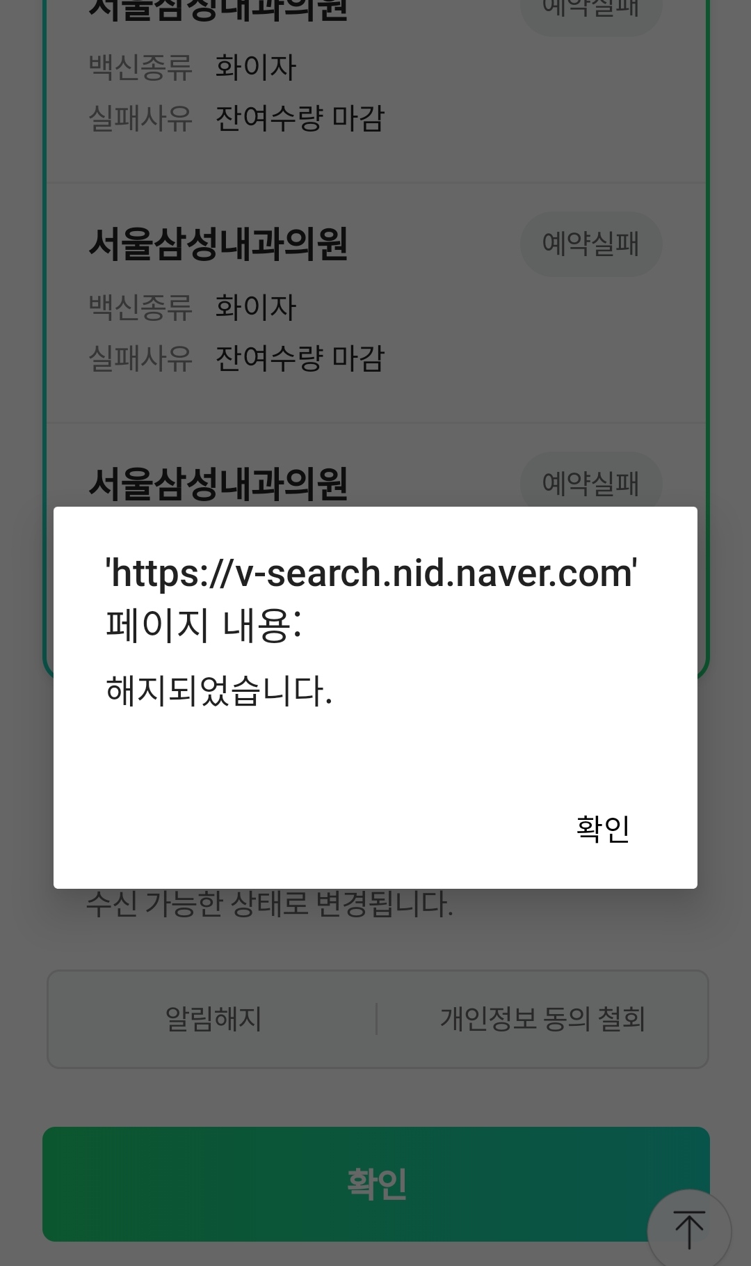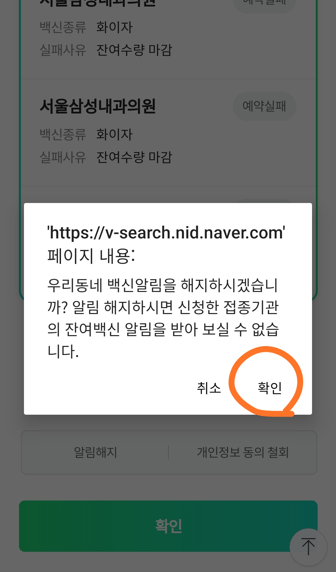 그러고 나서 이제 더이상 잔여백신 알림이 불필요한대도 네이버에서는 계속 알림이 떠서 그걸 취소해야 했다.