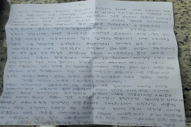 30일 김포에서 자살한 택배 대리점주 유서/CJ대한통운 택배대리점연합회 제공