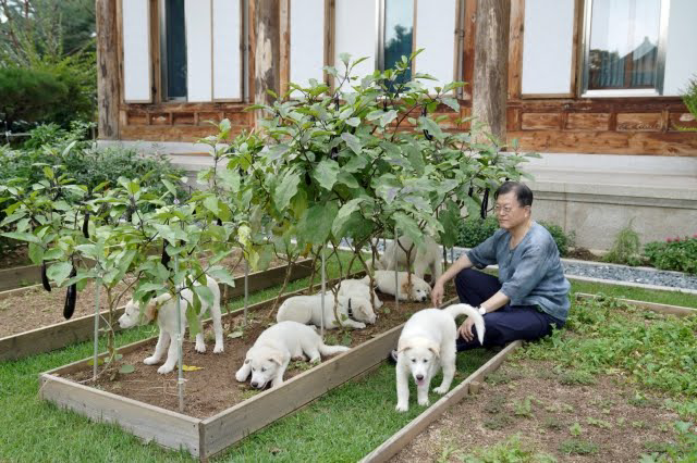 문 대통령은 전날 저녁 공식 SNS를 통해 2018년 김정은 위원장으로부터 선물받은 풍산개 ‘곰이’가 낳은 새끼 7마리의 모습과 이름을 공개했다. 당시 김 위원장은 풍산개 암컷 ‘곰이’와 수컷 ‘송강’이를 선물했다. 곰이가 낳은 새끼들은 문 대통령의 반려견 ‘마루’(풍산개)와의 사이에서 태어났다.