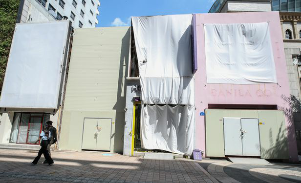 지난달 20일 서울 중구 명동 거리의 상가가 텅 비어 있다./연합뉴스