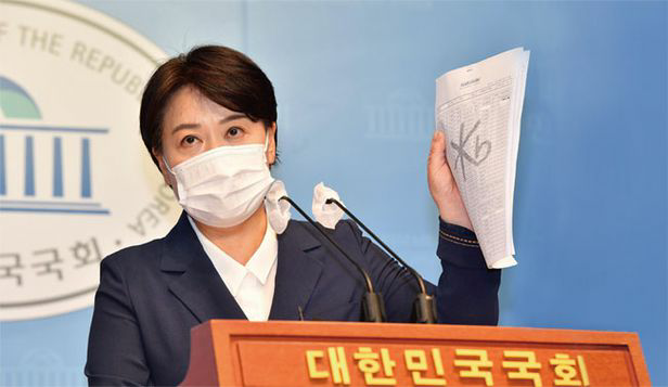 부친의 부동산 투기 의혹으로 국회의원직 사퇴의사를 밝힌 윤희숙 국민의힘 의원이 지난 8월 27일 서울 여의도 국회 소통관에서 기자회견을 열고 있다. photo 뉴시스