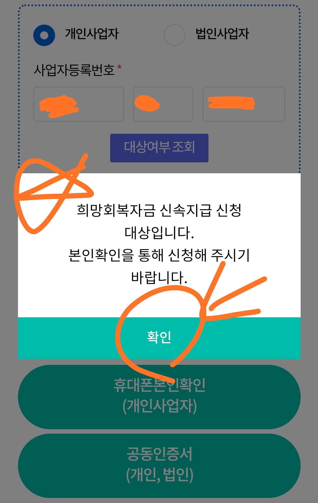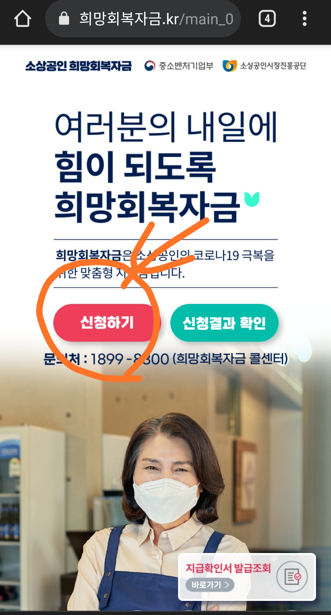 소상공인시장진흥공단 5차 재난지원금 소상공인 희망회복지원금 신청하지 않은 사업자 대상으로 일괄 발송된 문자 급기야 직접 전화가 와서 사기인줄 네이버 검색창에서 검색 처리함