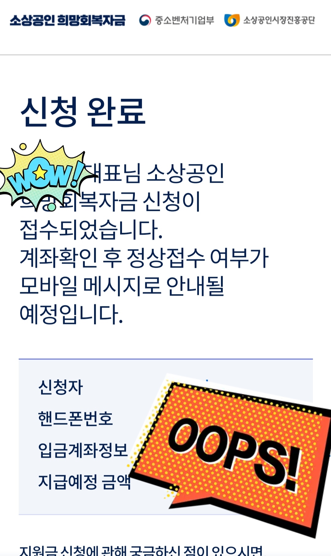 귀하는 「소상공인 희망회복자금」 신청 대상이지만, 9월 8일(수) 10시까지 아직 신청하지 않은 것으로 확인됩니다.