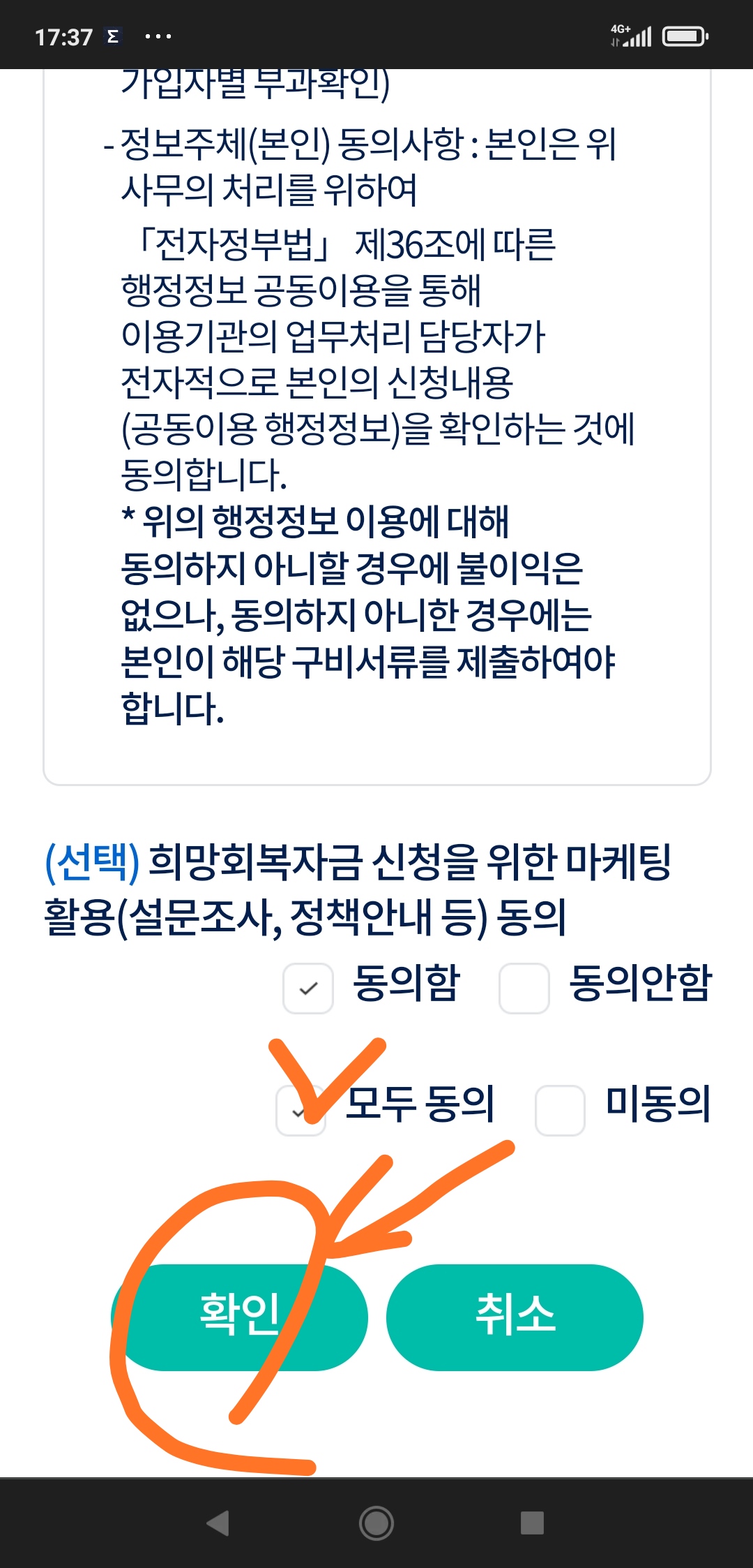 동의함 체크를 일일이 하지 말고, 맨 밑에 있는 모두 동의로 한꺼번에 체크하자.
