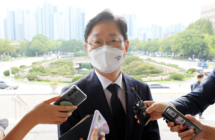 그는 대검의 자체 진상조사 경과에 대해 "보고받지 않아서 잘 모른다"면서 "현직 검사가 연루된 의혹이 있으니 공수처 수사와 중복되지 않는 범위 내에서 진상 조사해 나갈 것으로 안다"고 말했다.
