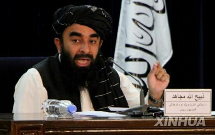 7일 아프가니스탄 수도 카불에서 과도 정부 명단을 발표하는 자비훌라 무자히드 탈레반 대변인. [신화=연합뉴스] 연합뉴스