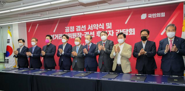 국민의힘 대선 경선에서 안상수·원희룡·유승민·윤석열·최재형·하태경·홍준표·황교안(가나다순) 후보가 1차 컷오프를 통과했다.