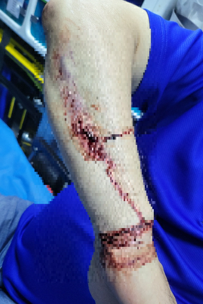 경찰서로 연행됐다가 119 구급대에 의해 병원으로 후송된 A씨는 오른쪽 무릎을 수술해야 한다는 진단을 받았다고 한다. 또 수갑에 긁혀 팔뚝에도 긴 상처를 입었다.