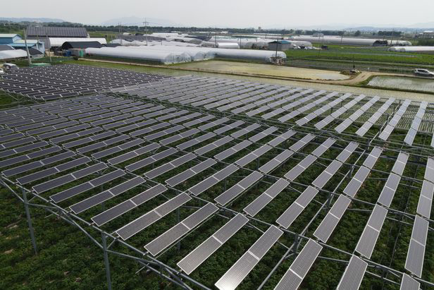 충북 청주시 청원구 오창읍 일대에 설치된 영농형 태양광 발전시설. /신현종 기자