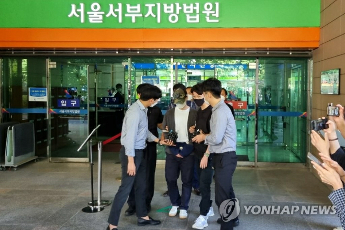 (서울=연합뉴스) 정성조 기자 = 서울 마포구의 한 오피스텔에서 자신과 말다툼을 하던 여자친구를 폭행해 숨지게 한 30대 남성이 15일 서울서부지법에서 구속 전 피의자 심문(영장실질심사)을 마친 뒤 법정에서 나오고 있다. 2021.9.15 xing@yna.co.kr 연합뉴스