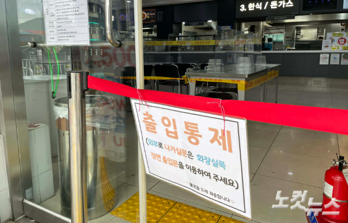 본격적인 추석 연휴를 하루 앞둔 17일 경기도 하남드림휴게소 내부 식탁에 통제선이 설치돼 있다. 박종민 기자