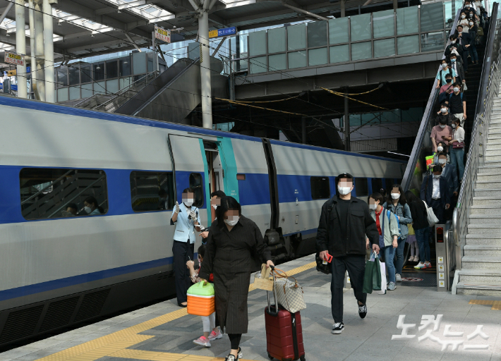 지난해 추석 서울 용산구 서울역에 시민들이 열차에 탑승하고 있다. 이한형 기자