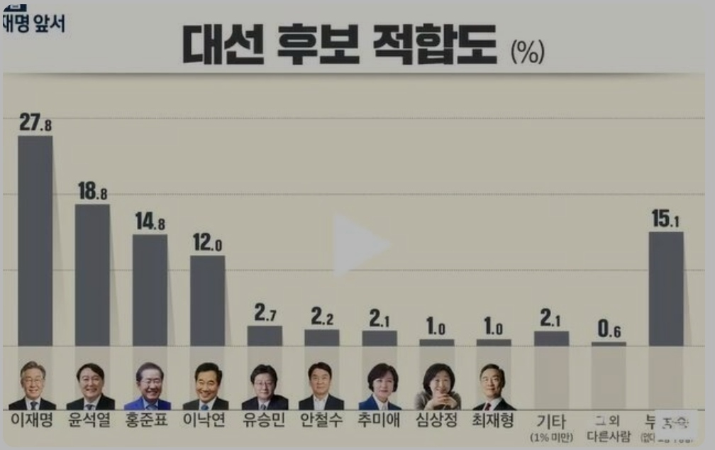 한국리서치, 이 27.8%-윤 18.8%