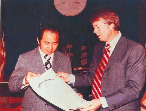 1976년 김장환 목사가 카터 조지아 주지사를 만나고 있다. 당시만 해도 조지아 주지사가 미국 대통령이 될 거라고 예상한 사람은 거의 없었다고 한다. 카터 당시 주지사는 침례교 목사인 김 목사에게 대통령 출마 의사를 밝히며 기도를 청했다. [극동방송]