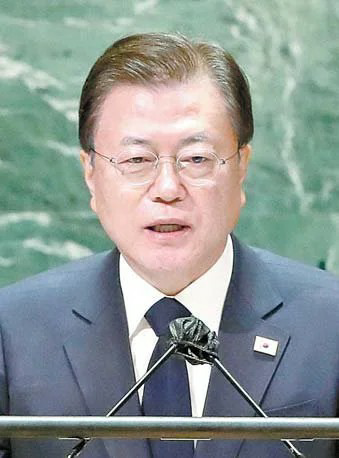 문재인 대통령이 21일(현지시간) 제76차 유엔총회 기조연설에서 ‘종전선언’ 카드를 다시 꺼내 들었다. 라파엘 그로시 국제원자력기구(IAEA) 사무총장이 지난 20일 총회에서 “북한은 플루토늄 분리와 우라늄 농축, 다른 (핵)활동 작업을 전속력으로 질주하고 있다(goes full steam ahead)”고 평가한 이후 하루 만이다.