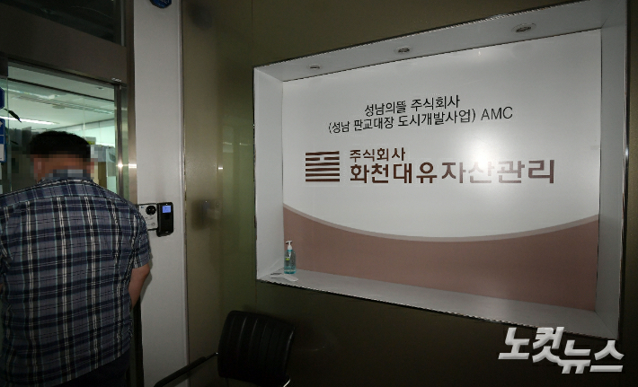 27일 오전 경기도 성남시 분당구 대장동 개발 사업 특혜 의혹을 받고 있는 화천대유 자산관리 사무실 모습. 이한형 기자