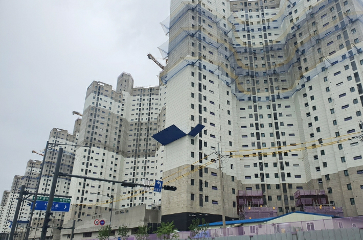 ◆ 손수호> 그렇습니다. 꼭대기층까지 골조 공사가 다 끝났어요. 20층 넘게. 80% 가까이 완성돼서 내부 마감공사 중이거든요. 내년 입주를 앞두고 있습니다. 그런데 지금 공사가 중단된 상태고요. 또 심지어 그중에 1400세대 정도는 아파트가 철거될 지도 모르는 심각한 상황이죠.