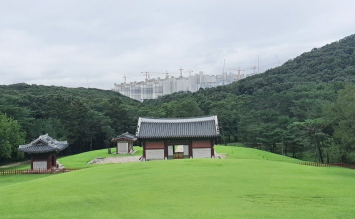 ◆ 손수호> 법령을 위반한 게 문제가 되는데요. 이 조선왕릉이 서울과 경기 지역에 총 40개가 있는데 2009년 유네스코 세계문화유산에 등재된 국가지정 문화재입니다. 따라서 왕릉 주변에 건물을 지으려면 문화재보호법에 따른 제한을 받아요.