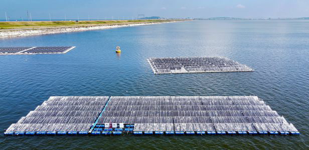 전북 군산시 비응도동 새만금방조제 인근 수상태양광 패널이 온통 새똥으로 범벅이 돼 있는 모습. / 김영근 기자