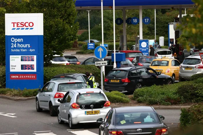 주유소 기름 동나고, 슈퍼 진열대 '텅텅'···패닉 빠진 영국