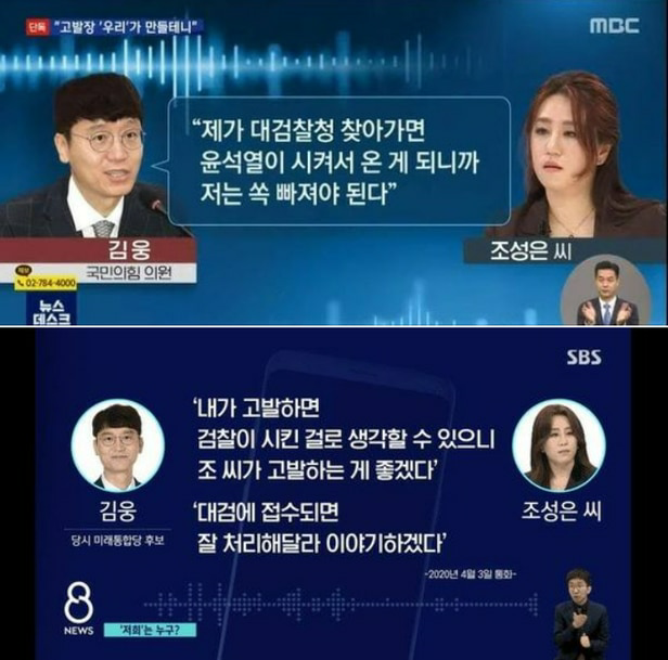 전날 MBC는 “김 의원과 조씨의 통화 녹음 파일의 구체적인 내용을 확인했다”고 보도했다. 김 의원의 발언은 “MBC가 취재한 녹취 내용에 따르면 ‘제가 대검을 찾아가면 윤석열이 시켜서 온 게 되니까 전 쏙 빠져야 된다’고 한 겁니다”라며 기자의 목소리로 처리됐다.