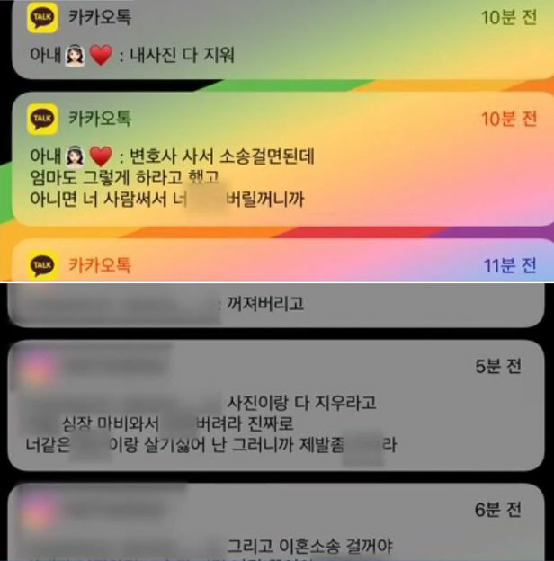공개된 이다영의 카카오톡 메시지 등을 보면, “내 사진 다 지워. 변호사 사서 소송걸면 된대. 엄마도 그렇게 하라고 했고. 아니면 사람 써서 너 XX 버릴 거니까, 준비하고 있어” “꺼져버리고. 사진이랑 다 지우라고. 심장마비 와서 XX 버려라. 진짜로 너 같은 XX랑 살기 싫어. 이혼 소송 걸거야”라는 내용이 담겨있다.